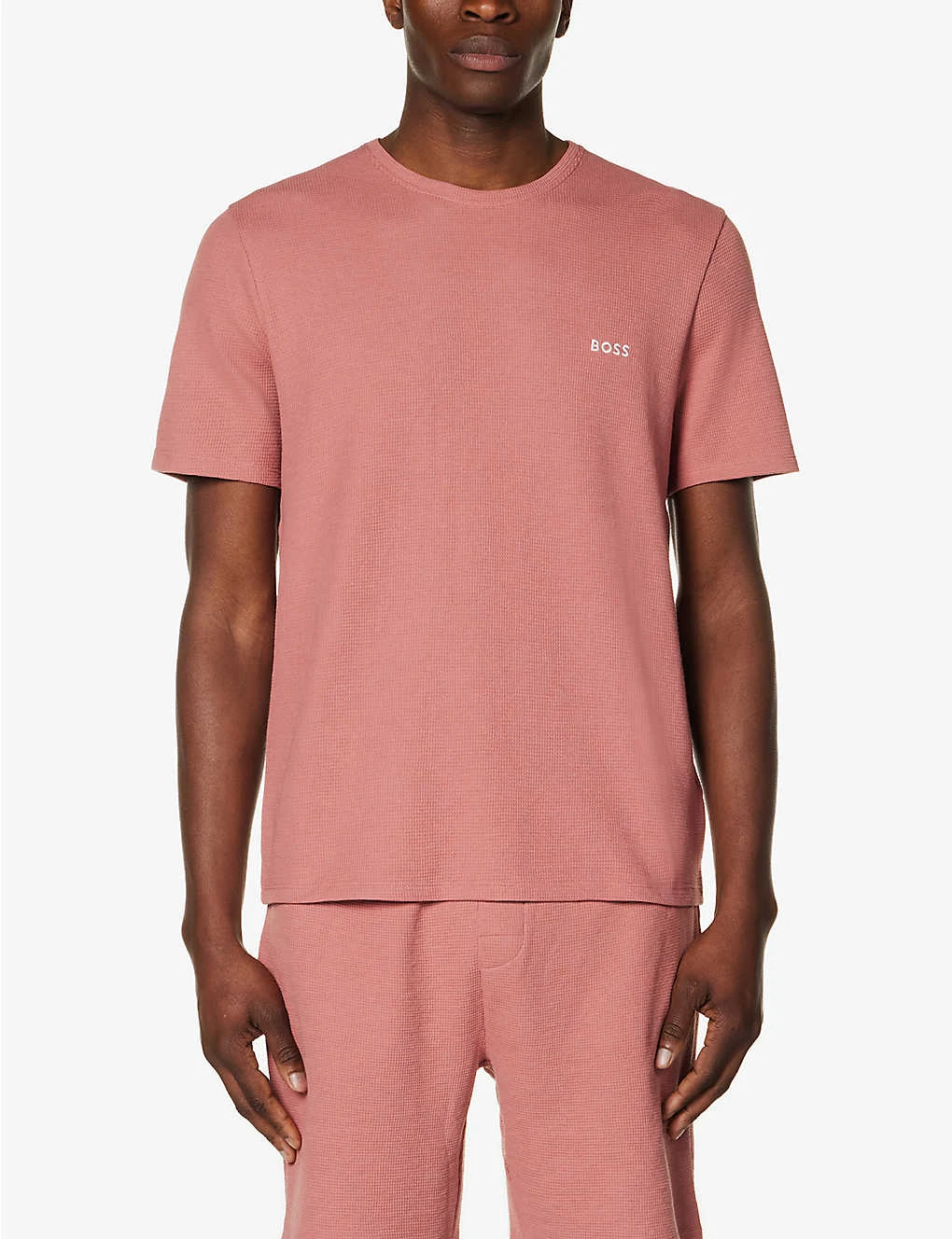 Boss Logo-embroidered Waffle-textured Cotton-blend T-shirt