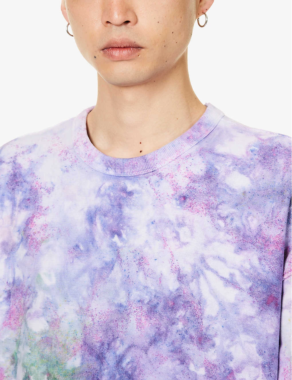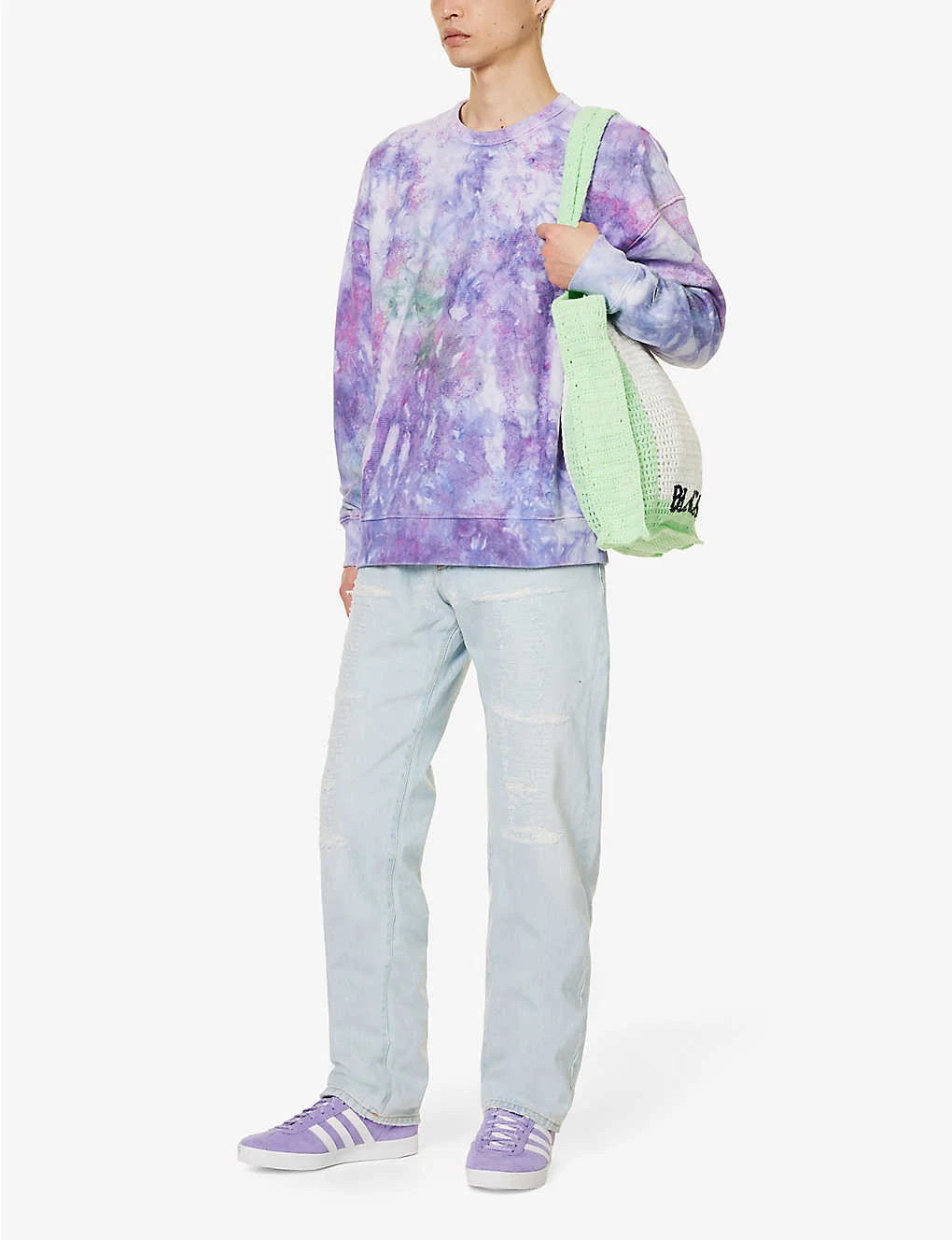 - Relaxed fit, crewneck, dropped shoulders, long sleeves, brand appliqué at sleeve, brand patch at front hem, all-over tie-dye pattern, ribbed trims
