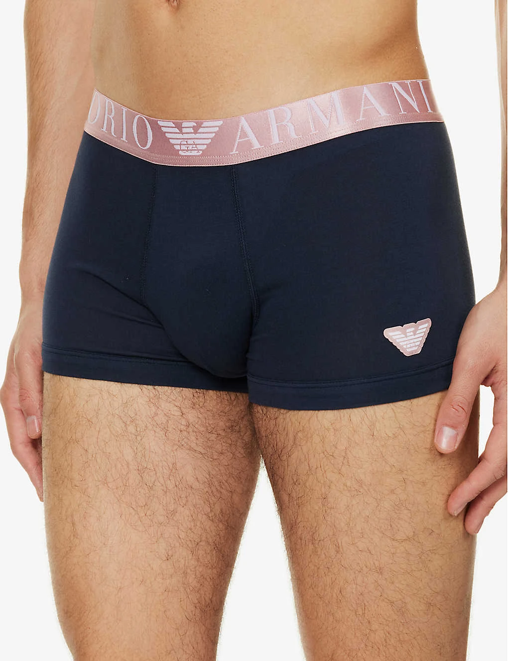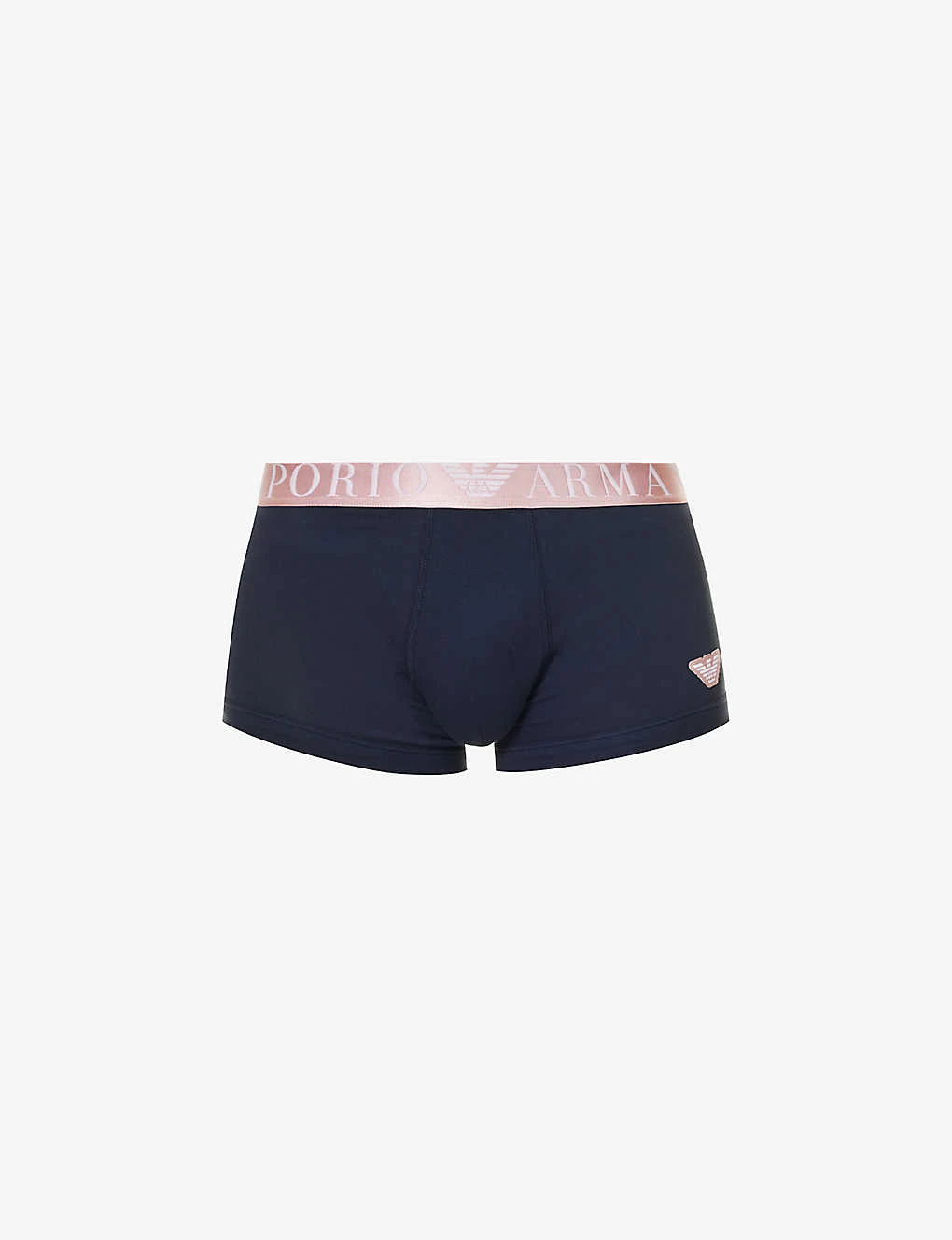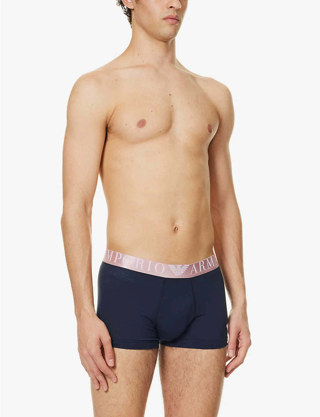 Emporio Armani Embroidered-logo Mid-rise Stretch-cotton Trunks
