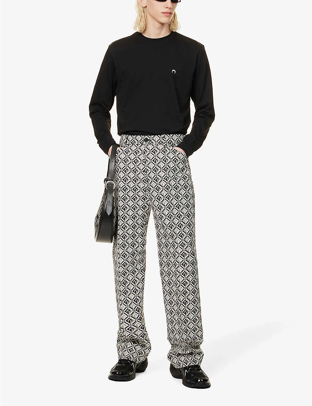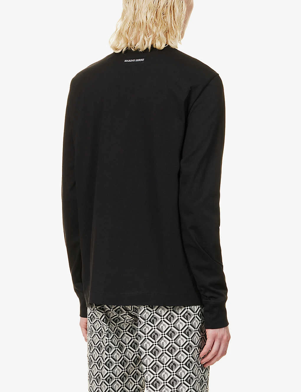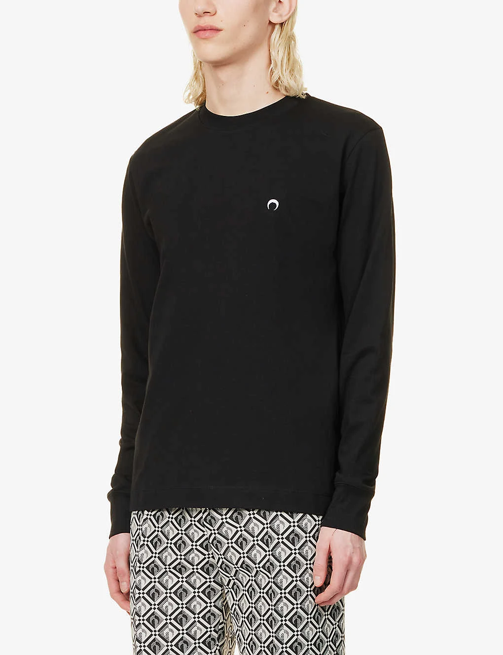 Marine Serre Moon-embroidered Long-sleeved Regular-fit Cotton-jersey T-shirt