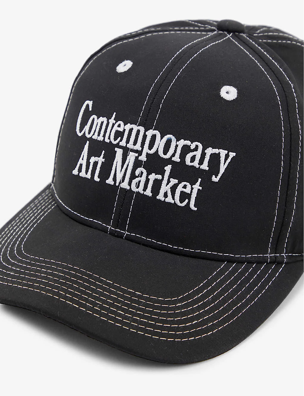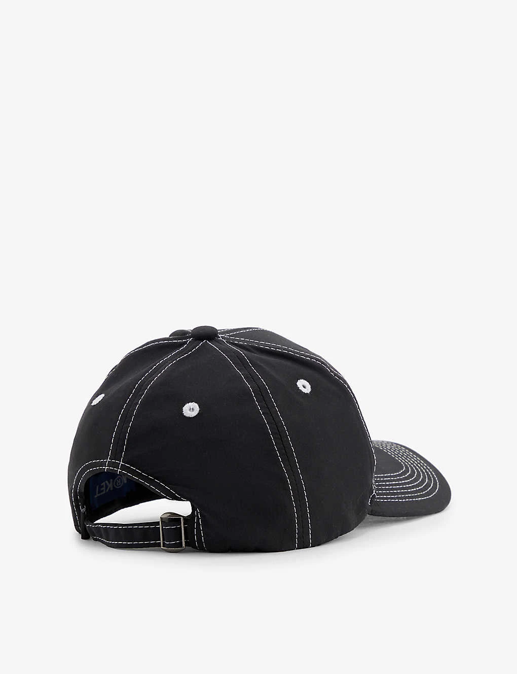 - Curved visor, brand text embroidery, contrast stitching, panelled, embroidered eyelets