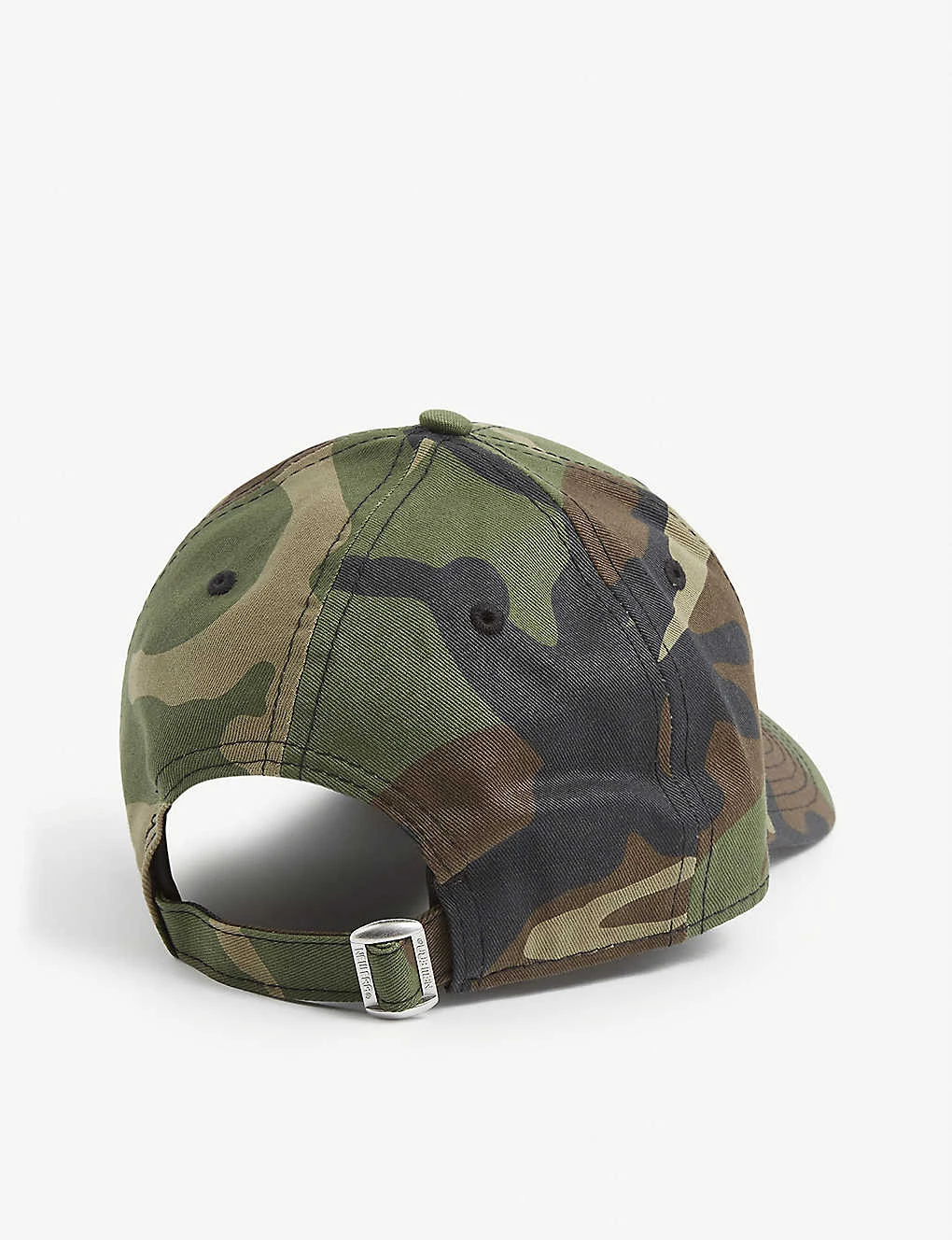 - Curved peak, camo design, contrast stitching, embroidered air vents